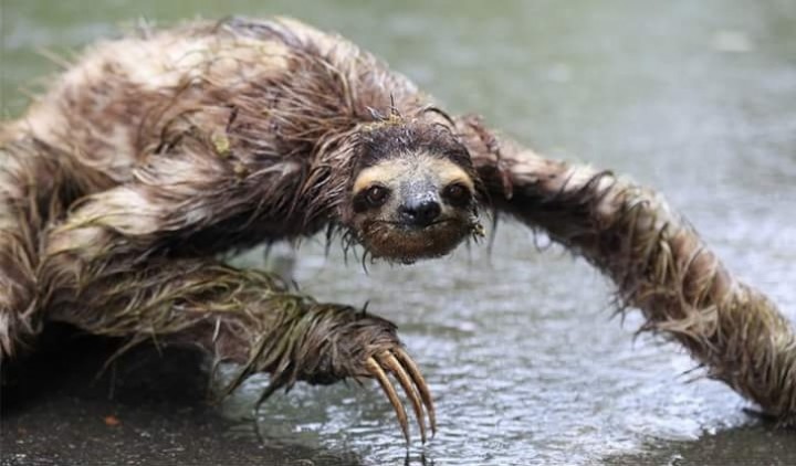 Этот попавший под дождь ленивец выглядит так, будто пришел забрать чью-то душу