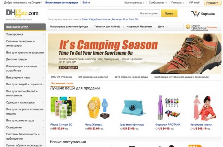 Основанный в 1994 году, DHGate является одним из старейших и крупнейших конкурентов Aliexpress (Aliexpress был основан в 2010 году). Вы найдете там огромное разнообразие дешевой одежды, аксессуаров, гаджетов и почти все, что вы можете придумать.