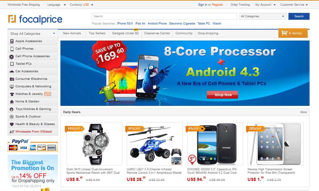 Focalprice является одним из ведущих в Китае сайтов по экспорту электронной коммерции B2C, который продается более чем 500 000 человек и более чем 180 странах мира. Focalprice имеет 70 000 наименований почти по 100 категориям - это много дешевых вещей.