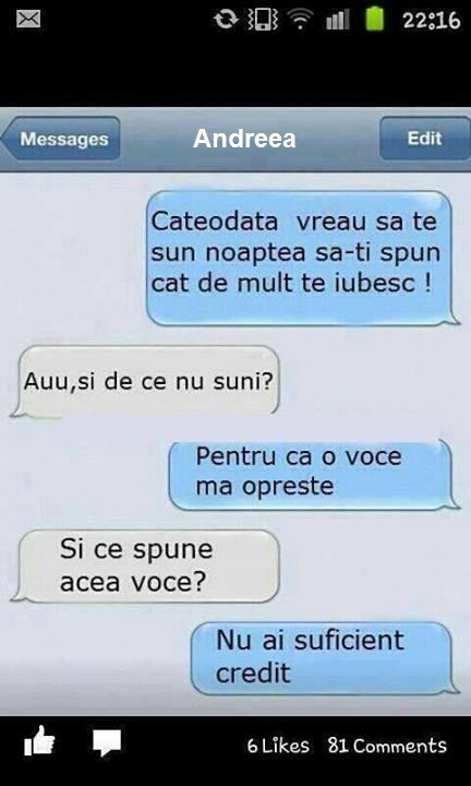 Ei bine, conversațiile unora sunt atât de amuzante că ar fi fost păcat să nu le facă publice cumva. Iată câteva dintre cele mai amuzante conversații, care au ajuns pe internet.